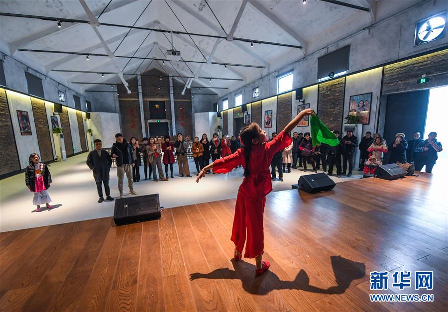 12月20日,學生在舊糧倉改建的鄉(xiāng)村電影院內排練鄉(xiāng)村春晚的節(jié)目。 新華社記者 徐昱 攝
