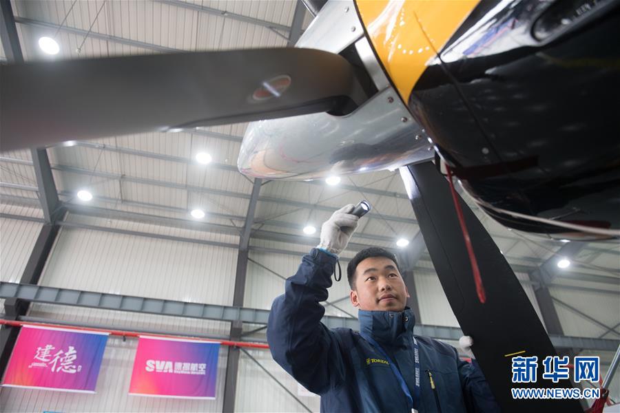 12月20日,在建德市航空小鎮(zhèn),工作人員對一架大棕熊100系列飛機進行日常維護。 當(dāng)日,浙江省建德市航空小鎮(zhèn)通航制造板塊首架飛機下線交付。此次下線交付的大棕熊100系列Ⅱ飛機由美國Quest飛機制造公司出品,有望在通用航空領(lǐng)域發(fā)揮作用。建德市自2016年開始航空小鎮(zhèn)創(chuàng)建,2017年被列入全國第二批特色小鎮(zhèn)名單。 新華社記者翁忻旸攝
