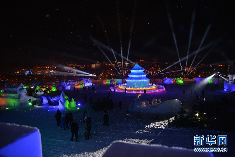 12月21日,游客在冰雪節(jié)開幕式上參觀冰雪雕塑。新華社記者鄒予攝