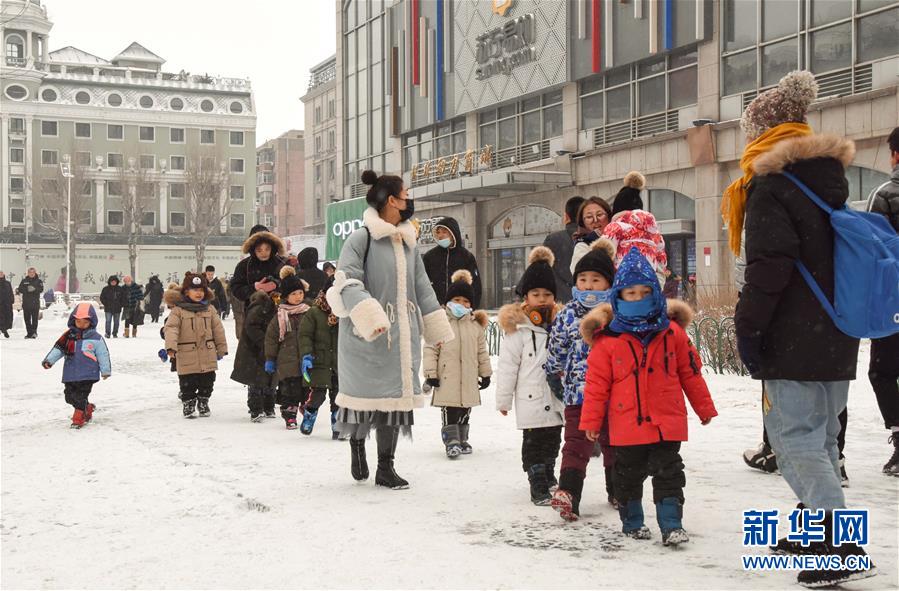 12月21日,游客在哈爾濱中央大街游覽。當(dāng)日,“冰城”哈爾濱迎來降雪天氣,整個城市變得銀裝素裹。新華社記者韓宇攝