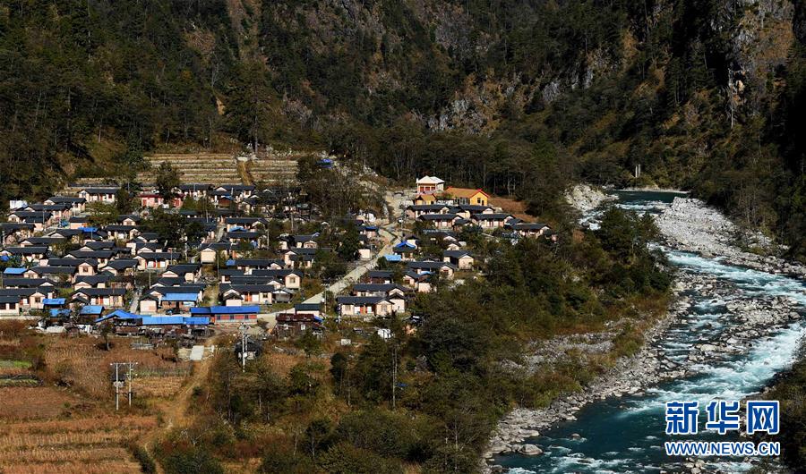 獨(dú)龍江鄉(xiāng)孔當(dāng)村的獨(dú)龍族新居(2016年11月23日攝)。 新華社記者 藺以光 攝