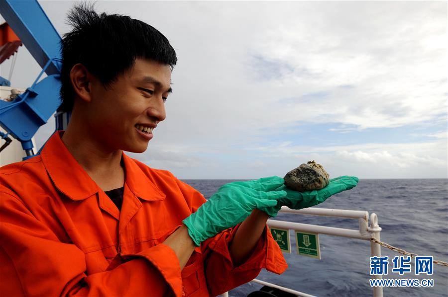 科考團隊在泥火山采集到的蛇紋石樣品(12月20日攝)。