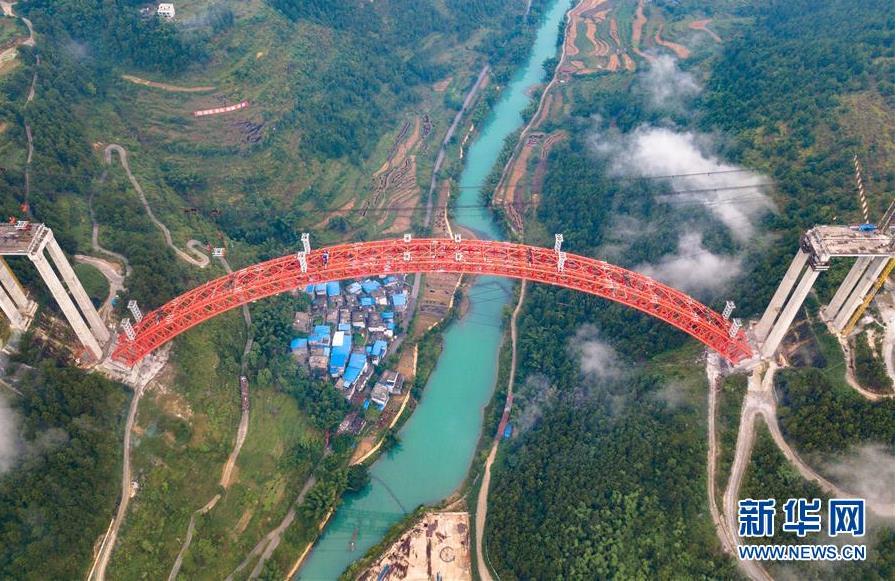 9月28日拍攝的川藏鐵路拉林段重點(diǎn)標(biāo)志性工程藏木特大橋。 當(dāng)日,隨著最后一節(jié)鋼管拱的對位和鎖定完畢,川藏鐵路拉林段藏木特大橋成功合龍,標(biāo)志著大橋主體結(jié)構(gòu)施工取得了關(guān)鍵性勝利。藏木特大橋由中國中鐵廣州局集團(tuán)承建,拱高112米,橋橫跨雅魯藏布江峽谷,水深66米。 新華社記者普布扎西攝