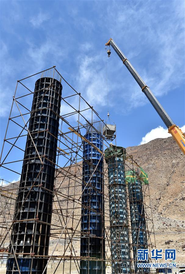 工作人員在拉薩至那曲高等級(jí)公路控制性工程羊八井峽谷施工(4月18日攝)。目前,西藏拉薩至那曲高等級(jí)公路控制性工程建設(shè)進(jìn)展順利。 新華社記者 覺果 攝