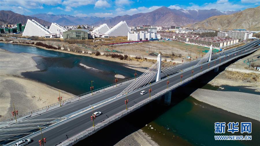 這是橫跨拉薩河的新建環(huán)城路納金大橋段(3月4日無人機拍攝)。 新華社記者 晉美多吉 攝