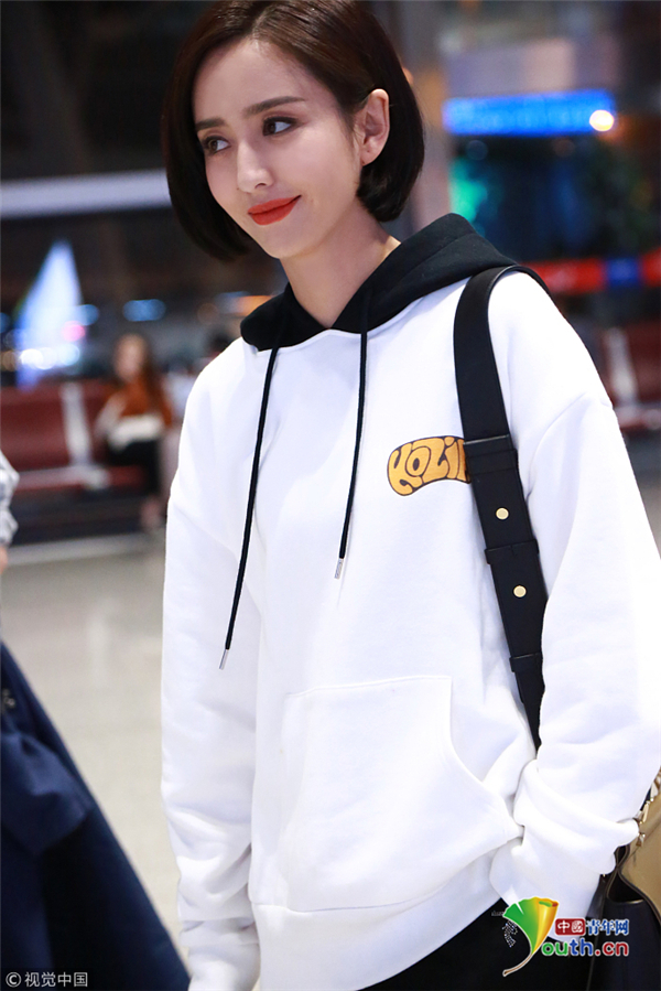 10月18日,湖南長(zhǎng)沙, 佟麗婭錄完《快樂(lè)大本營(yíng) 》現(xiàn)身長(zhǎng)沙機(jī)場(chǎng),她梳利落短發(fā)穿連帽衛(wèi)衣,笑容甜美氣質(zhì)佳。