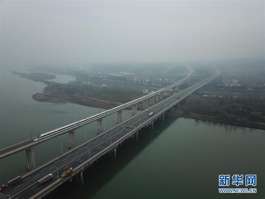 杭黃高鐵正式通車(chē) 12月25日,D9551次首發(fā)列車(chē)駛過(guò)富春江特大橋(無(wú)人機(jī)拍攝)。 新華社記者 邢廣利 攝