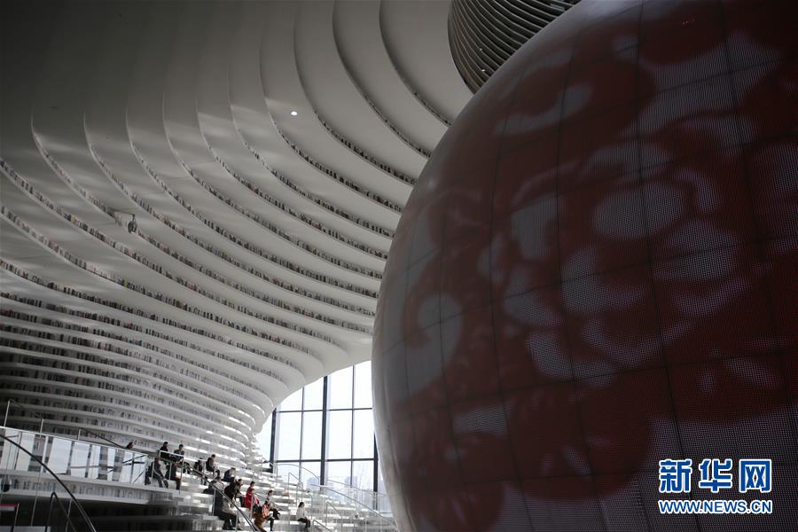 12月27日,讀者參觀天津濱海新區(qū)圖書館中庭。 濱海新區(qū)圖書館位于天津濱海文化中心,2017年10月1日正式開館,設(shè)計立意為“濱海之眼”和“書山有路勤為徑”。圖書館現(xiàn)有藏書60多萬冊,一年多來接待讀者約280萬人次,已成為濱海新區(qū)的文化“新地標”。 新華社記者段卓力攝