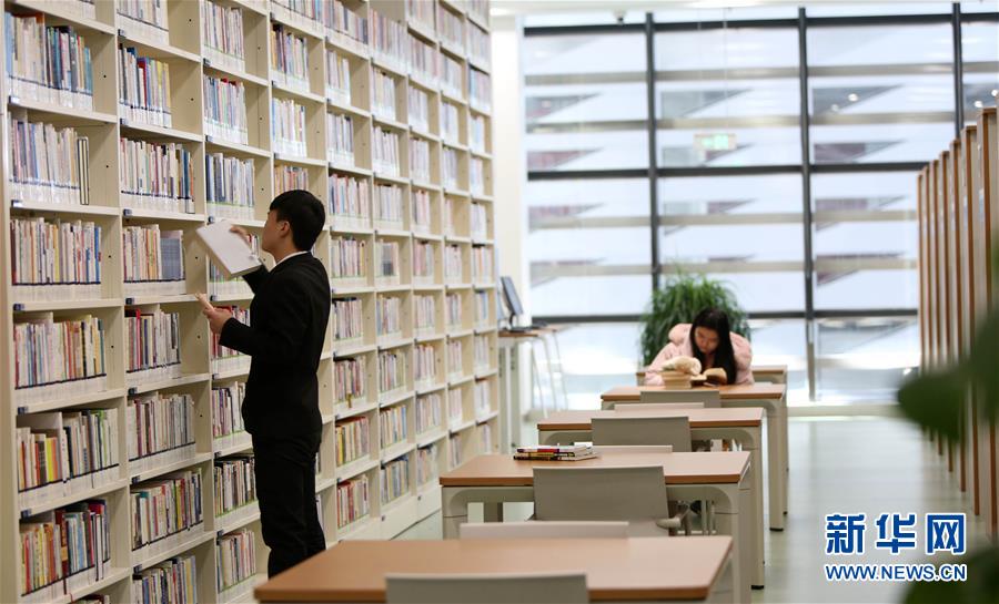 12月27日,在天津濱海新區(qū)圖書館,工作人員(左)在閱覽室中擺放圖書。 濱海新區(qū)圖書館位于天津濱海文化中心,2017年10月1日正式開館,設(shè)計立意為“濱海之眼”和“書山有路勤為徑”。圖書館現(xiàn)有藏書60多萬冊,一年多來接待讀者約280萬人次,已成為濱海新區(qū)的文化“新地標”。 新華社記者伍婧丹攝