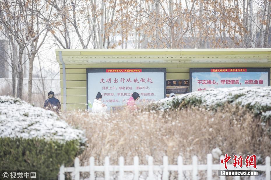 山東濱州發(fā)布道路結(jié)冰黃色預(yù)警信號(hào)市區(qū)出現(xiàn)較明顯降雪,路表溫度低于0℃。圖片來源:視覺中國(guó)