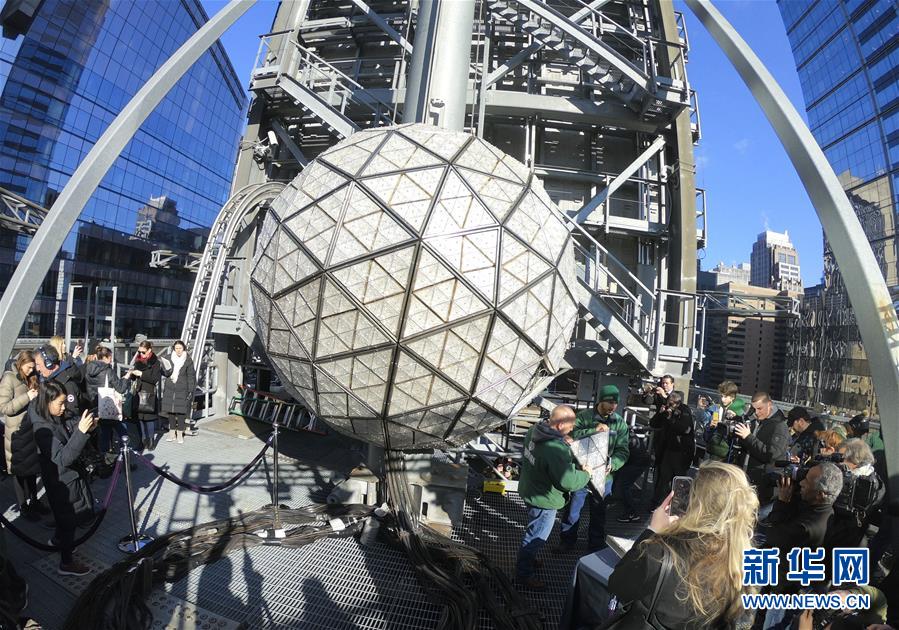 這是12月27日在美國紐約時報廣場拍攝的水晶球安裝現(xiàn)場。 每年12月31日晚,紐約時報廣場都會舉辦跨年慶典,當(dāng)午夜鐘聲響起之時,水晶球緩緩落下,慶祝新的一年到來。 新華社記者 張墨成 攝