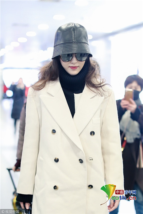 2018年12月27日, 唐嫣從北京飛往上?,F(xiàn)身機(jī)場。她身穿白色外套,戴黑色皮帽時髦max,低頭露幸福淺笑白到發(fā)光,獲粉絲送小禮物人氣爆棚。