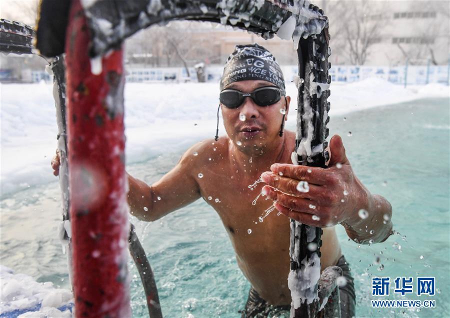 當(dāng)日,新疆烏魯木齊戶外氣溫接近零下20攝氏度,許多冬泳愛好者不懼嚴(yán)寒,來到烏魯木齊紅山游泳中心戶外泳池進(jìn)行冬泳運(yùn)動(dòng),鍛煉身體,磨練意志。