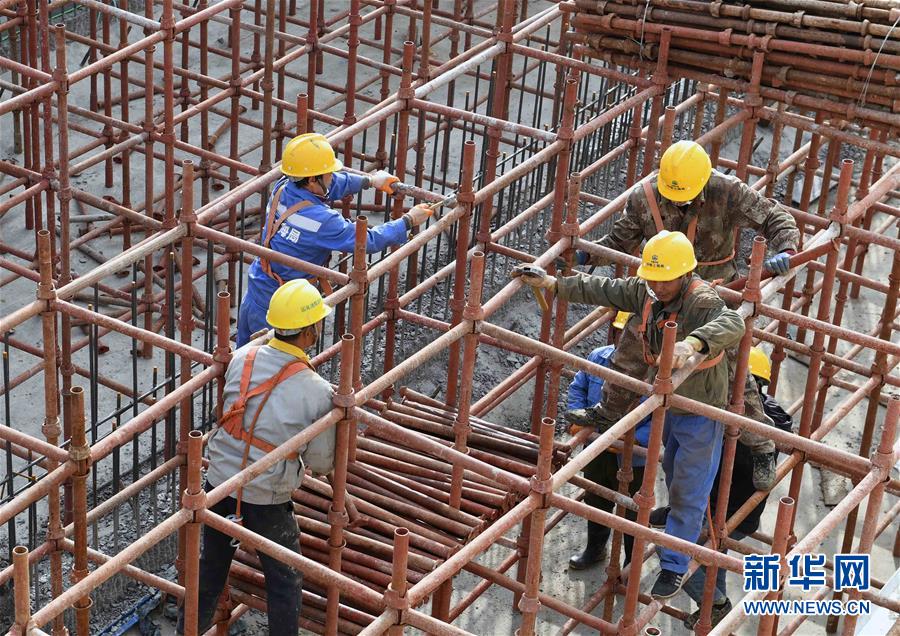 12月31日,工人在昆明市軌道交通4號(hào)線廣衛(wèi)停車場(chǎng)工地上安裝模板。新年假期,擔(dān)負(fù)云南昆明市軌道交通4號(hào)線廣衛(wèi)停車場(chǎng)施工的中鐵上海工程局集團(tuán)第六公司的員工堅(jiān)守崗位,奮戰(zhàn)在建設(shè)工地上。新華社記者 楊宗友 攝