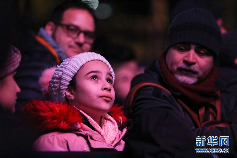 2018年12月31日,在意大利羅馬,一名女孩在跨年活動(dòng)上觀看燈光秀。 新華社記者程婷婷攝