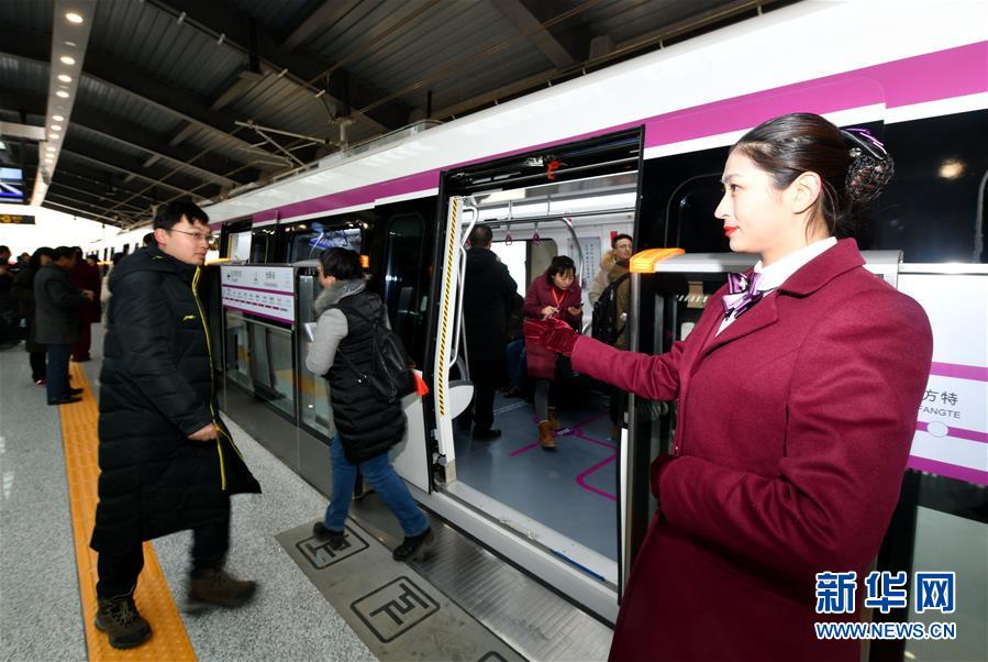 2019年1月1日,工作人員在濟(jì)南軌道交通1號線創(chuàng)新谷站引導(dǎo)乘客。