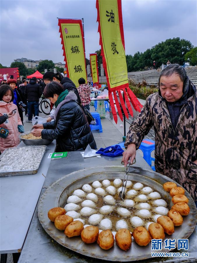 2019年1月1日,居民在展演活動上制作傳統(tǒng)美食“油墩”。2019年元旦,浙江省桐鄉(xiāng)市濮院鎮(zhèn)舉辦新年“非遺文化藝術(shù)節(jié)”活動,濮院鎮(zhèn)下屬多個鄉(xiāng)村的傳統(tǒng)美食制作、手工藝品、非遺文化表演等鄉(xiāng)村特色非遺項(xiàng)目在濮院鎮(zhèn)中心廣場進(jìn)行集中展示展演。新華社記者 徐昱 攝