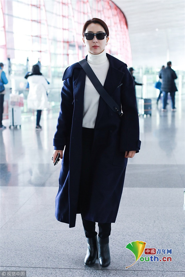 2019年1月7日,北京,馬蘇現(xiàn)身機(jī)場(chǎng)。她身穿黑色到腳大衣霸氣外露,架黑超涂紅唇似帥氣“女特工”。