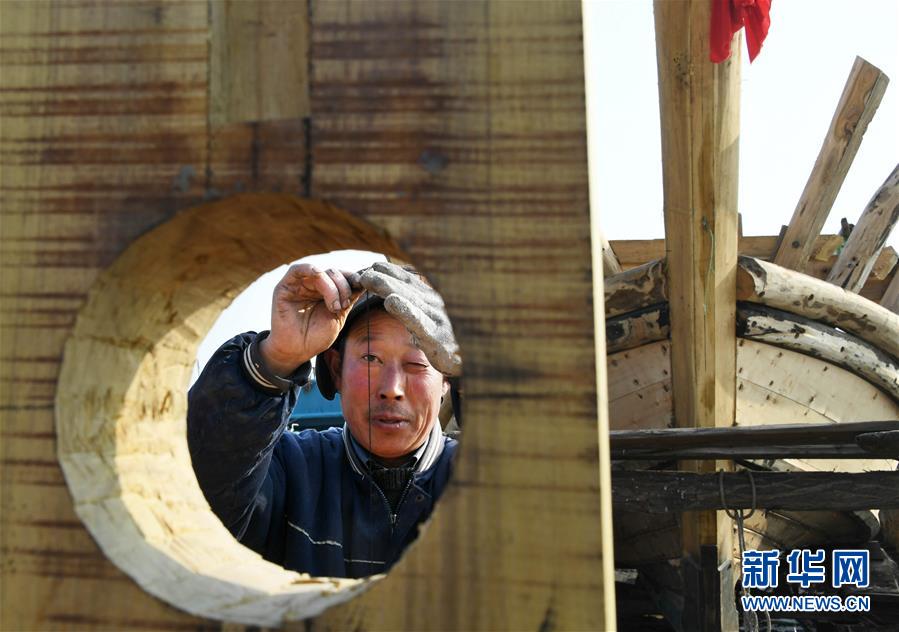劉雙林在用墨斗測(cè)量安裝角度(1月10日攝)。新華社記者 李紫恒 攝