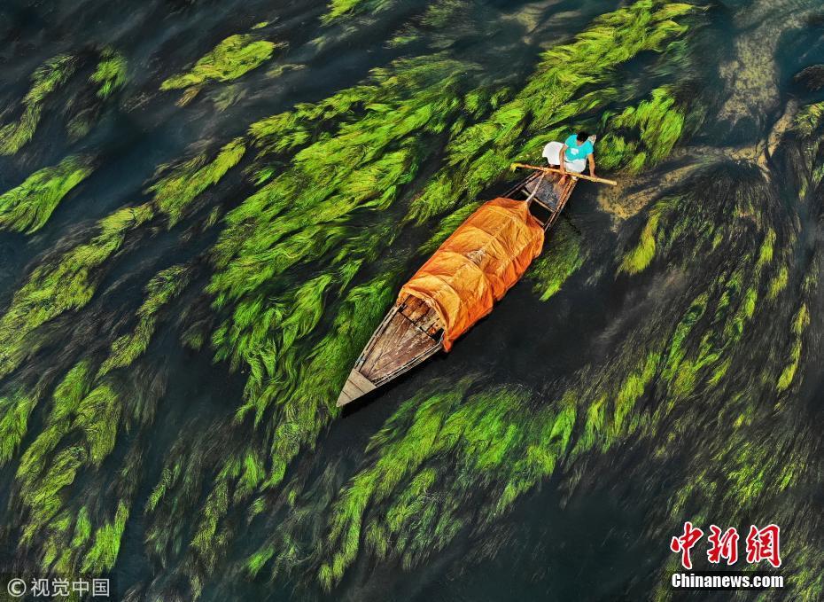 中國(guó)新聞網(wǎng)1月14日訊(具體拍攝時(shí)間不詳),孟加拉國(guó)烏拉帕拉,漁船在水流和藻類的映襯下前行,畫面看起來(lái)就像水彩畫一般。圖片來(lái)源:視覺中國(guó)