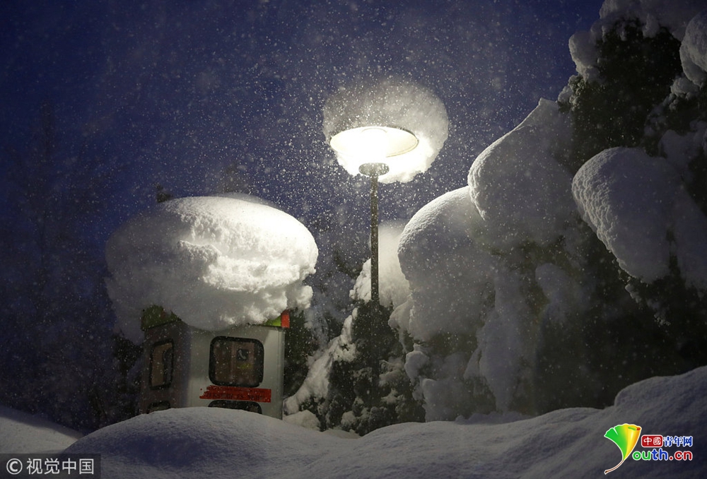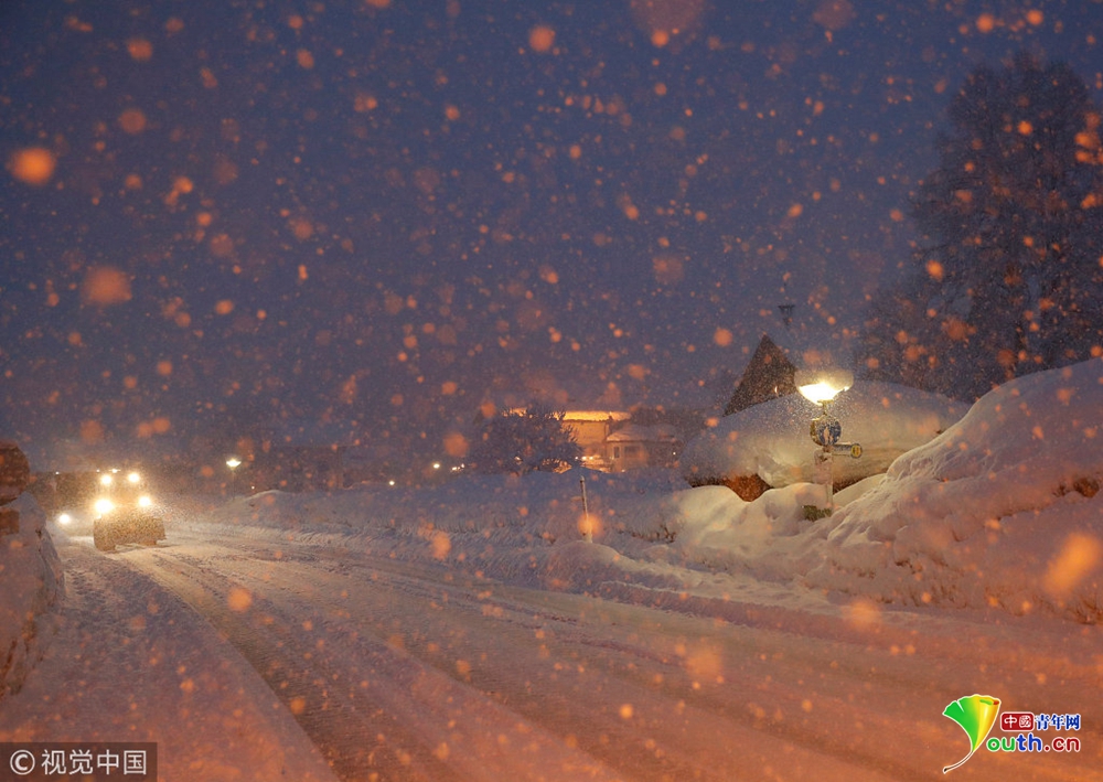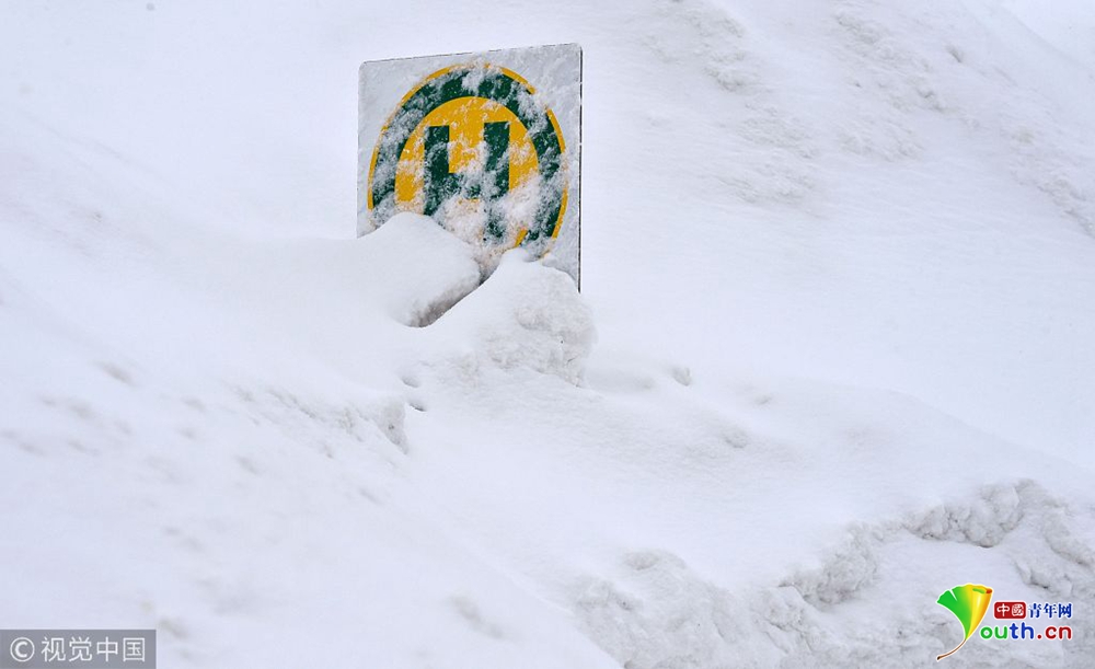 德國多地大雪紛飛 火車被困半路進(jìn)退不得
