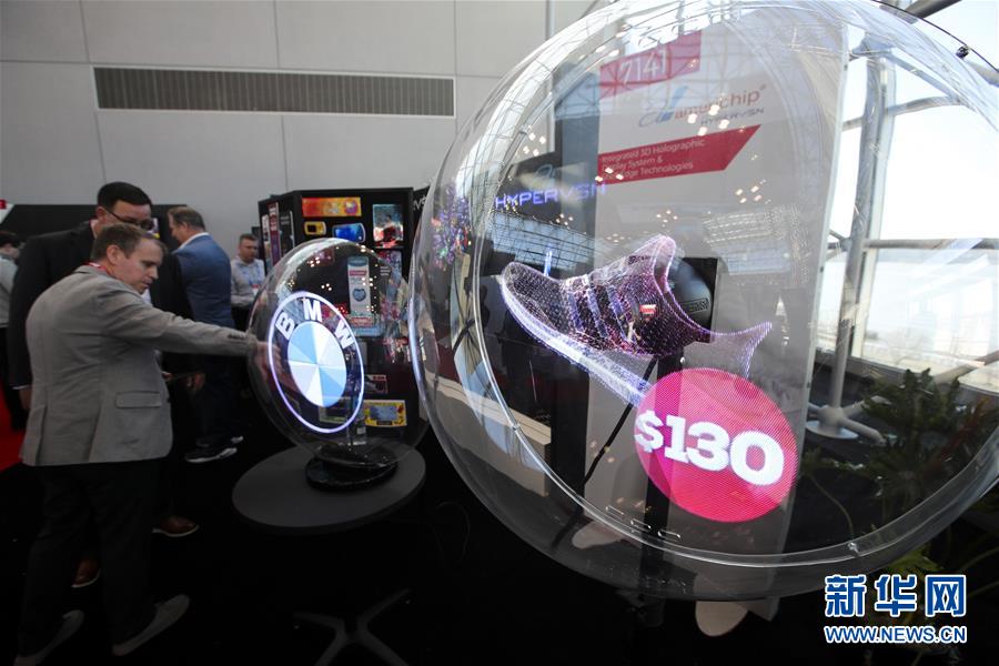 1月14日,在美國(guó)紐約舉行的全國(guó)零售商聯(lián)合會(huì)年度大會(huì)的“創(chuàng)新實(shí)驗(yàn)室”展廳,參觀者觀看使用3D全息投影技術(shù)的商品展示設(shè)備。 美國(guó)全國(guó)零售商聯(lián)合會(huì)年度大會(huì)于1月13日至15日在紐約舉行,許多來自世界各地的展商帶來使用新技術(shù)開發(fā)出的軟硬件產(chǎn)品,向觀眾展示未來零售業(yè)的新愿景。 新華社記者 王迎 攝