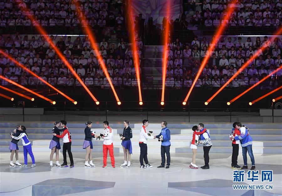 1月15日,中芬運動員代表互贈紀念品。 當日,“2019中芬冬季運動年”開幕式在北京首鋼冰球館舉行。 新華社記者申宏攝