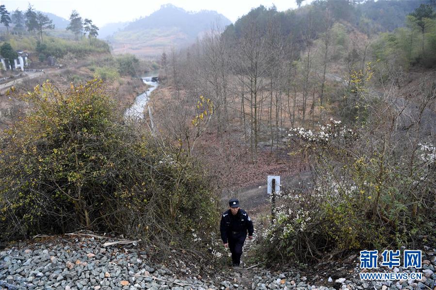 1月16日,汪茂才在巡線途中。 今年52歲的汪茂才是合肥鐵路公安處黃山站派出所歙縣警務(wù)室的一名線路民警,他所在的警務(wù)室負(fù)責(zé)皖南山區(qū)皖贛鐵路線約80公里范圍內(nèi)的線路安全。從警30年來(lái),線路巡查、鐵路安全知識(shí)宣傳等是汪茂才的日常工作。多年來(lái)的徒步巡線,讓汪茂才練就了一雙快腿,十公里的路,汪茂才兩個(gè)小時(shí)就能走完。 汪茂才負(fù)責(zé)的鐵路沿線周邊村莊較多,很多房子都是沿鐵路線而建,有些村民為了圖方便,違規(guī)穿越鐵路線。加強(qiáng)對(duì)鐵路沿線居民的安全宣傳教育,成為汪茂才的一項(xiàng)重要工作,沿線村民的安全意識(shí)也越來(lái)越高。 對(duì)汪茂才這樣的線路民警來(lái)說(shuō),大多數(shù)時(shí)候都是“獨(dú)行俠”,“當(dāng)線路民警就要耐得住寂寞,守得住孤獨(dú),與大山為伴,與線路為友,盡己所能,為鐵路安全運(yùn)行保駕護(hù)航?!蓖裘耪f(shuō)。 新華社記者劉軍喜攝