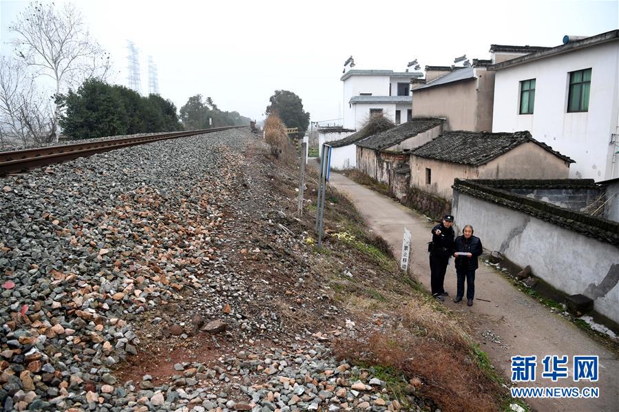 1月16日,汪茂才向鐵路沿線村民宣傳鐵路安全知識。 今年52歲的汪茂才是合肥鐵路公安處黃山站派出所歙縣警務(wù)室的一名線路民警,他所在的警務(wù)室負(fù)責(zé)皖南山區(qū)皖贛鐵路線約80公里范圍內(nèi)的線路安全。從警30年來,線路巡查、鐵路安全知識宣傳等是汪茂才的日常工作。多年來的徒步巡線,讓汪茂才練就了一雙快腿,十公里的路,汪茂才兩個(gè)小時(shí)就能走完。 汪茂才負(fù)責(zé)的鐵路沿線周邊村莊較多,很多房子都是沿鐵路線而建,有些村民為了圖方便,違規(guī)穿越鐵路線。加強(qiáng)對鐵路沿線居民的安全宣傳教育,成為汪茂才的一項(xiàng)重要工作,沿線村民的安全意識也越來越高。 對汪茂才這樣的線路民警來說,大多數(shù)時(shí)候都是“獨(dú)行俠”,“當(dāng)線路民警就要耐得住寂寞,守得住孤獨(dú),與大山為伴,與線路為友,盡己所能,為鐵路安全運(yùn)行保駕護(hù)航。”汪茂才說。 新華社記者劉軍喜攝