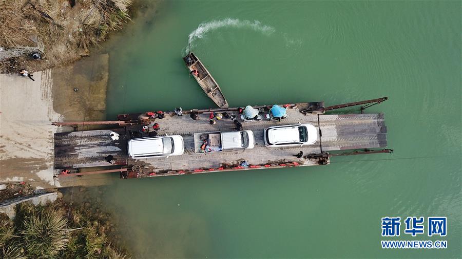1月22日,渡輪在八吉渡口接送群眾(無人機拍攝)。新華社記者 歐東衢 攝