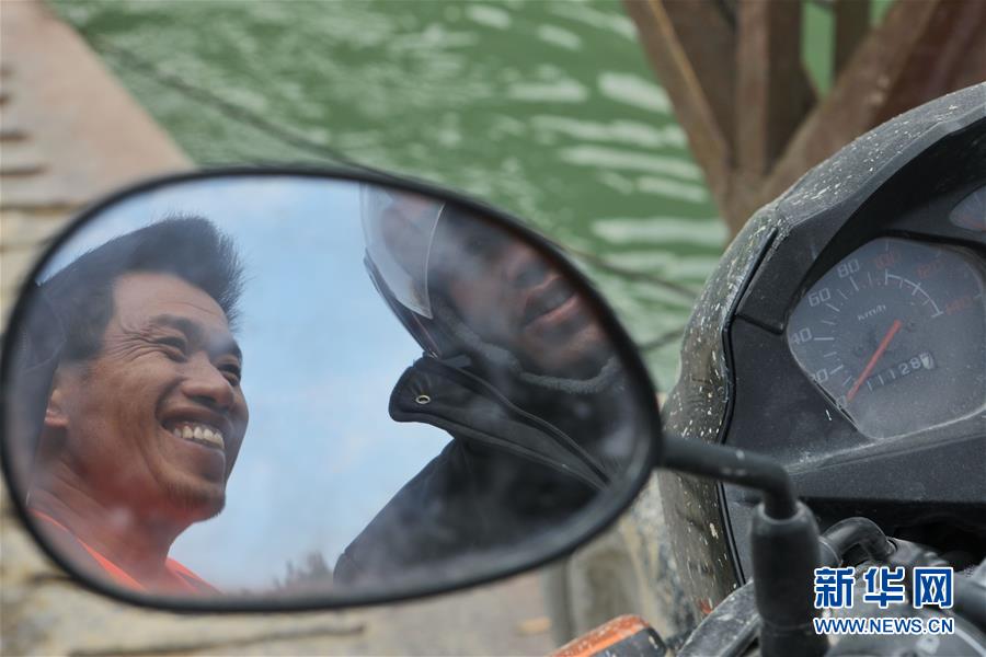1月22日,賴福昌(左)與乘坐渡輪回家的當?shù)卮迕窠徽劇?新華社記者 歐東衢 攝