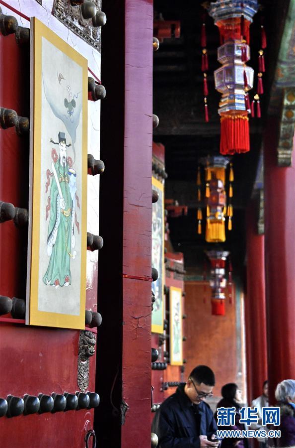 這是在故宮內(nèi)拍攝的古代宮廷節(jié)日裝飾品(1月25日攝)。 春節(jié)將至,北京故宮博物院內(nèi)張燈結(jié)彩,到處懸掛著宮燈、萬(wàn)壽燈、年畫、門神、福字等古代宮廷節(jié)日裝飾品,讓來(lái)自國(guó)內(nèi)外的游人感受到濃濃的年味。 新華社記者 李欣攝