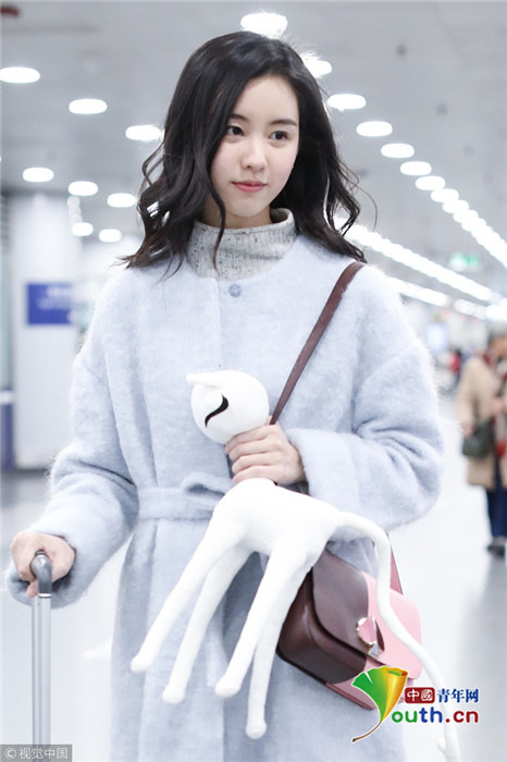 2019年1月27日,北京,陳都靈現(xiàn)身機場。手里拿著可愛白色公仔的她深夜現(xiàn)身機場,皮膚狀態(tài)仍非常好,羨煞旁人。