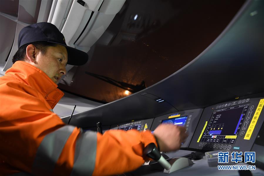 1月29日,王瑞在動(dòng)車(chē)上進(jìn)行調(diào)車(chē)作業(yè)。新華社記者劉軍喜攝