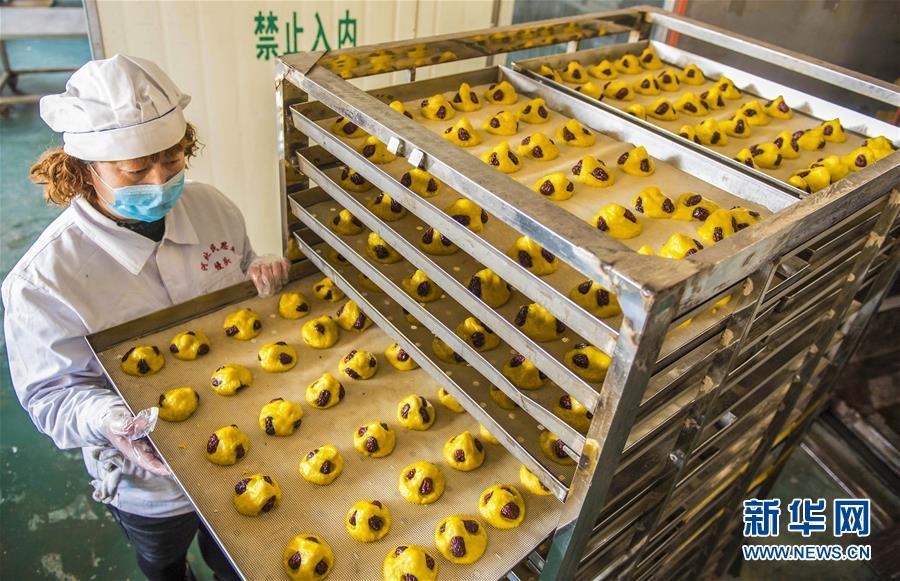 1月25日,在河北棗強(qiáng)一家食品公司,工人將新鮮花糕出爐。 春節(jié)臨近,河北省棗強(qiáng)縣面食加工廠的面點(diǎn)師傅們忙著趕制花糕、花饃等傳統(tǒng)面食,以供應(yīng)節(jié)日市場。當(dāng)?shù)赜羞^年蒸花糕、做花饃的習(xí)俗,寓意步步登高,生活一年比一年好。 新華社記者 李曉果攝