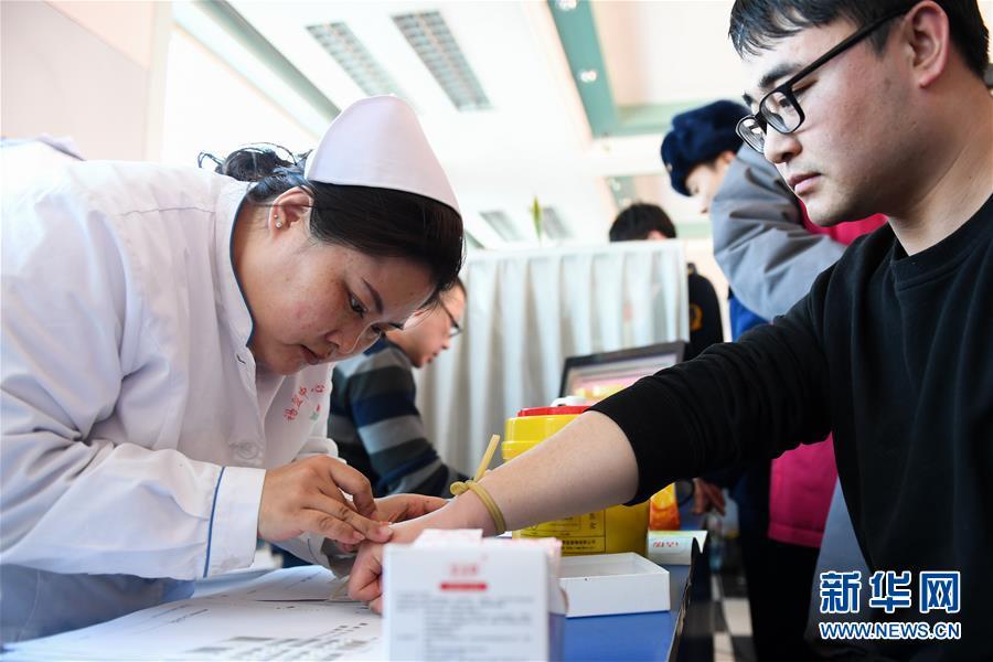 2月24日,在錫林郭勒盟中心血站,工作人員在為前來獻(xiàn)血的志愿者檢驗(yàn)血型。 內(nèi)蒙古自治區(qū)錫林郭勒盟“2·23”重大事故傷者正在錫林郭勒盟醫(yī)院、錫林郭勒盟蒙醫(yī)醫(yī)院接受救治。因用血需求量大,當(dāng)?shù)匮獛鞄齑嬉欢鹊陀诰渚€。在當(dāng)?shù)卣h下,各單位職工、市民紛紛前往錫林郭勒盟中心血站獻(xiàn)血。截至24日16時(shí),已有220余名志愿者完成獻(xiàn)血,采集全血6.8萬毫升,機(jī)采血小板9個(gè)治療量。 新華社記者 劉磊 攝