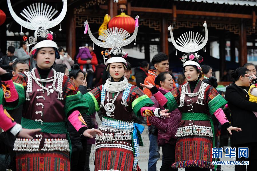 2月24日,在貴州省凱里市舟溪鎮(zhèn),苗族小姑娘身著盛裝跳蘆笙舞。 當(dāng)日,在貴州省黔東南苗族侗族自治州凱里市舟溪鎮(zhèn),來自各地的苗族群眾身著節(jié)日盛裝,歡聚在古老的“甘囊香”蘆笙堂,男子吹奏起蘆笙,姑娘和孩子們跳起蘆笙舞,歡度新春,祈求風(fēng)調(diào)雨順、五谷豐登,青年男女也借此良日尋覓意中人。 “甘囊香”是苗語音譯,意思為“河流的下游,神仙匯聚的地方”?!案誓蚁恪碧J笙會是貴州規(guī)模最大、最古樸的苗族蘆笙會之一。 新華社記者楊文斌攝