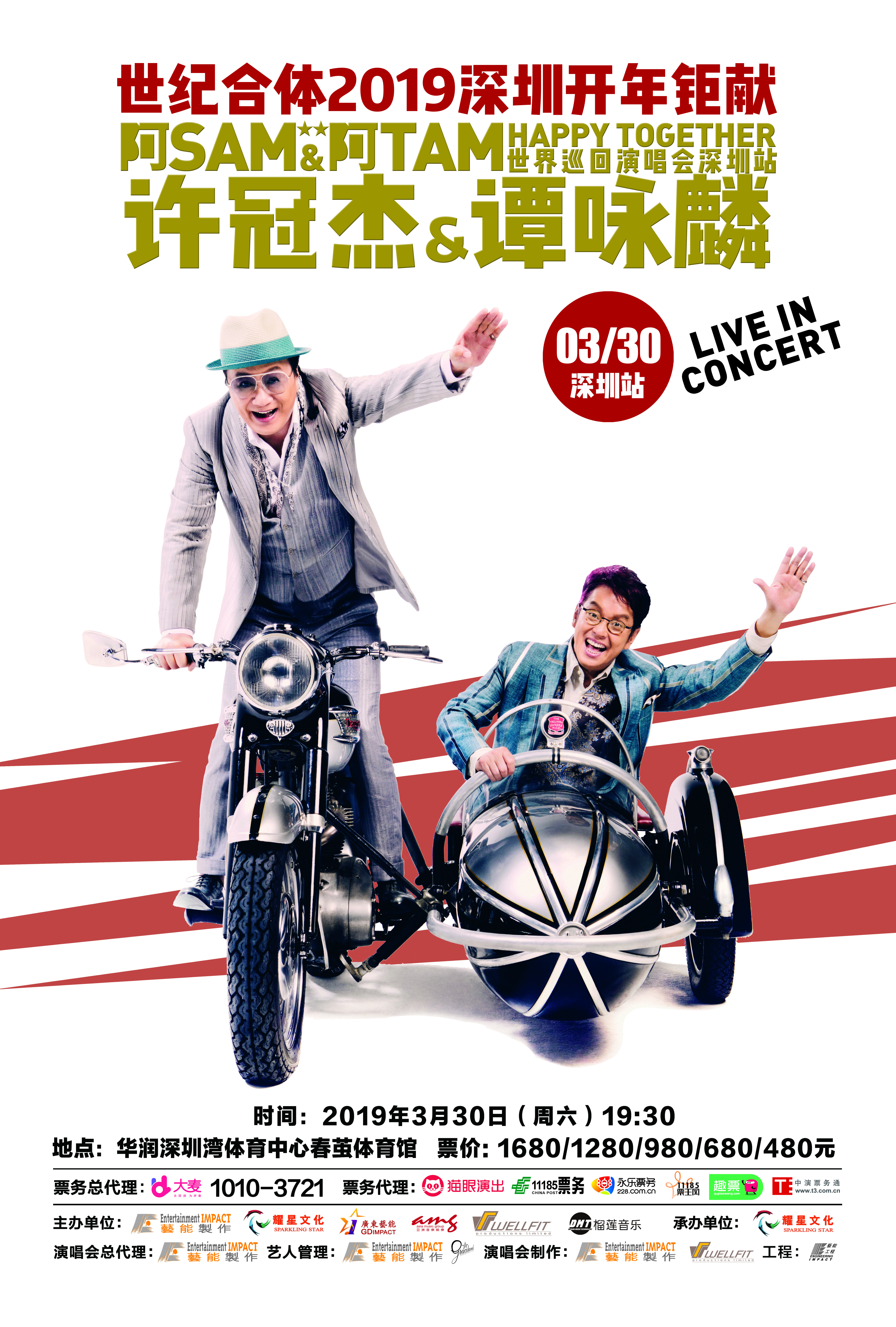 “許冠杰&譚詠麟阿Sam &阿Tam Happy Together”世界巡回演唱會(huì)于2月16日在澳門(mén)開(kāi)啟了2019新春首唱,此后,他們將于3月23日和3月30日登陸佛山世紀(jì)蓮體育中心體育場(chǎng)和深圳灣體育中心“春繭”體育館。