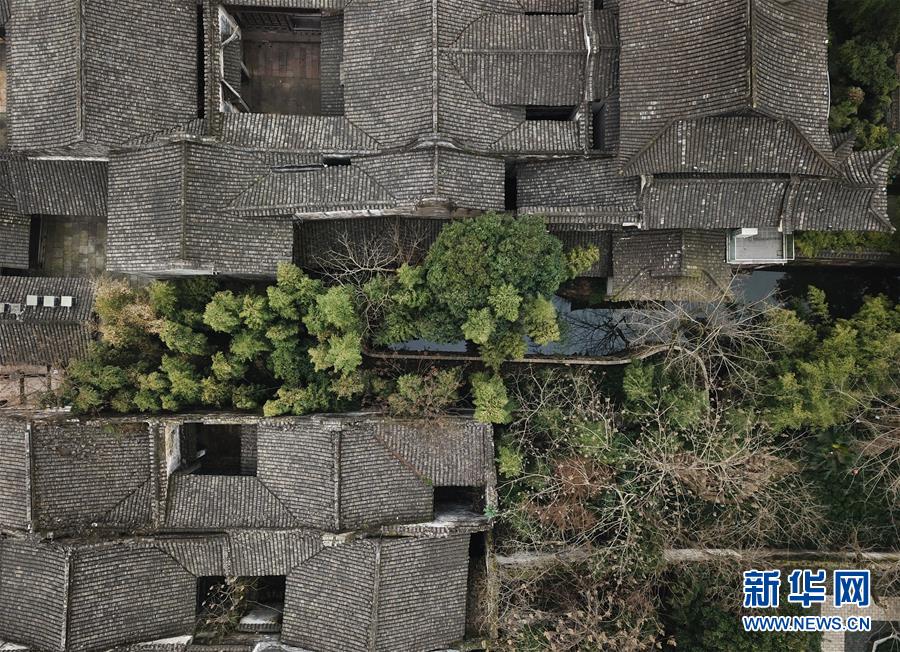 2月25日,烏鎮(zhèn)景區(qū)一處庭院內(nèi)春意萌動(dòng)(無人機(jī)拍攝)。 隨著氣溫升高,浙江省桐鄉(xiāng)市烏鎮(zhèn)景區(qū)春意萌動(dòng)。 新華社記者翁忻旸攝