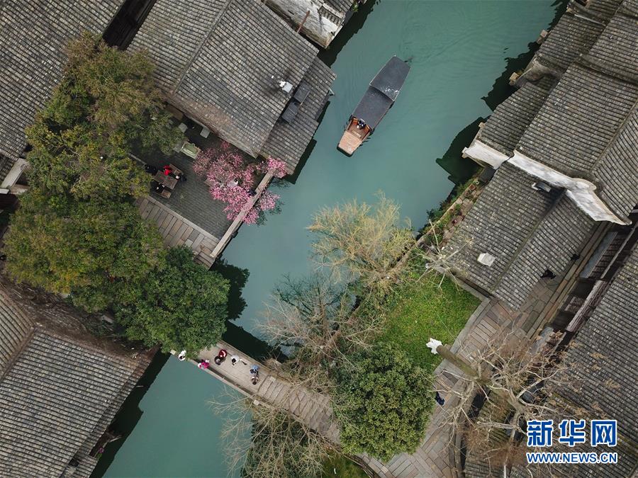 2月25日,游人在烏鎮(zhèn)游覽觀光(無人機拍攝)。 隨著氣溫升高,浙江省桐鄉(xiāng)市烏鎮(zhèn)景區(qū)春意萌動。 新華社記者翁忻旸攝