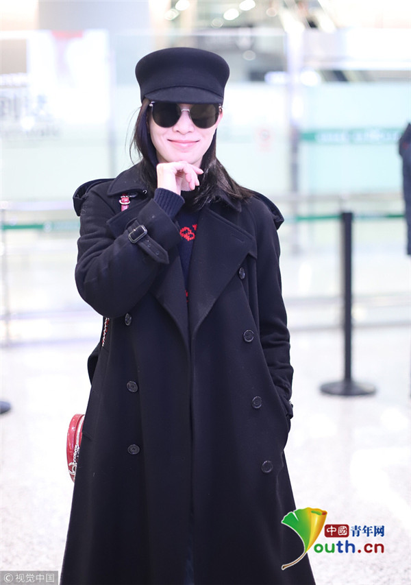 2019年2月28日,上海,佘詩(shī)曼現(xiàn)身機(jī)場(chǎng)。她頭戴禮帽,身穿黑色大衣走路帶風(fēng)氣場(chǎng)強(qiáng),單手托腮甜笑瞬間暖人心。