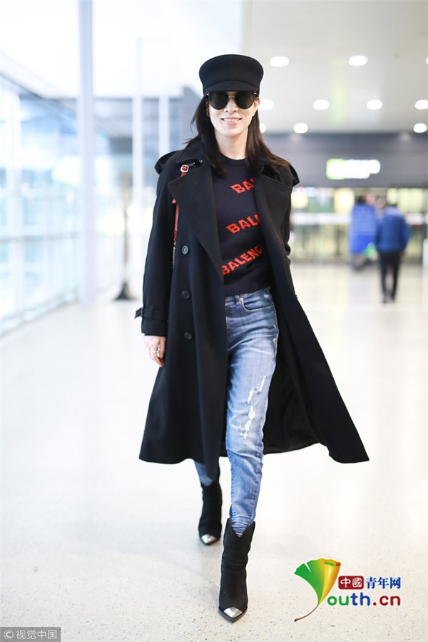 2019年2月28日,上海,佘詩曼現(xiàn)身機(jī)場。她頭戴禮帽,身穿黑色大衣走路帶風(fēng)氣場強(qiáng),單手托腮甜笑瞬間暖人心。