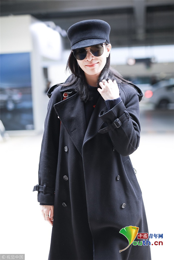 2019年2月28日,上海,佘詩曼現(xiàn)身機場。她頭戴禮帽,身穿黑色大衣走路帶風氣場強,單手托腮甜笑瞬間暖人心。