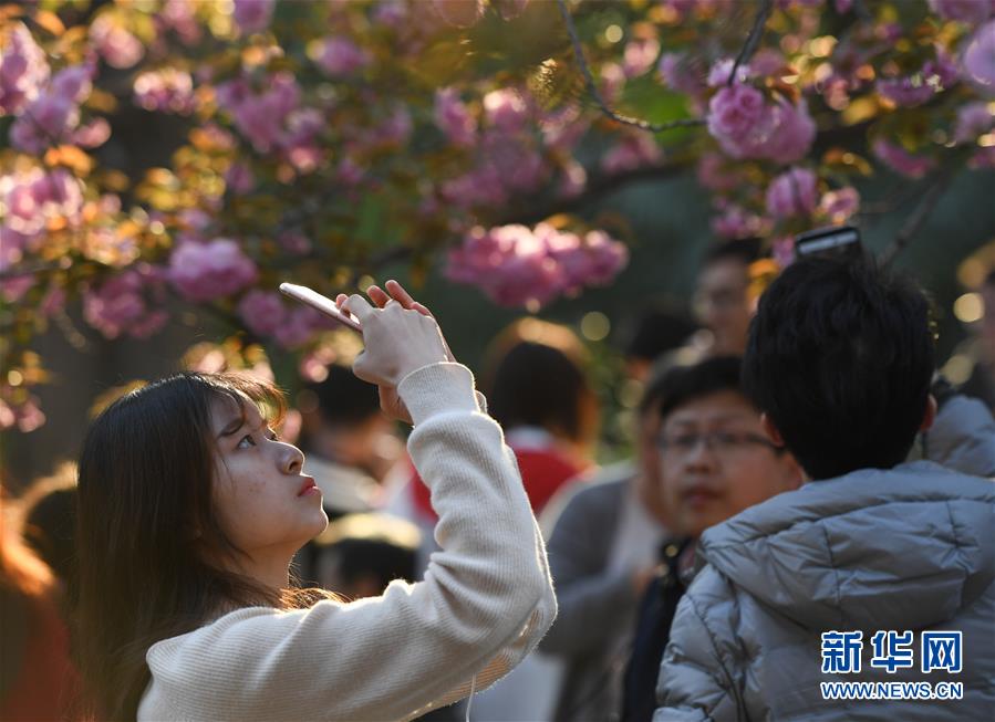3月31日,游客在中國科學(xué)技術(shù)大學(xué)東區(qū)觀賞櫻花。