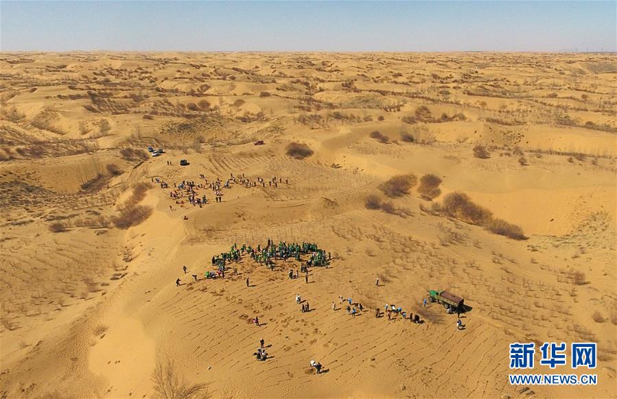 3月31日,中韓青年在內(nèi)蒙古達(dá)拉特旗庫(kù)布其沙漠中植樹(shù)(無(wú)人機(jī)拍攝)。 當(dāng)日,200余名中韓兩國(guó)青年志愿者來(lái)到內(nèi)蒙古自治區(qū)達(dá)拉特旗庫(kù)布其沙漠種樹(shù)。2006年起,中國(guó)國(guó)際青年交流中心與韓國(guó)韓中文化青少年協(xié)會(huì)組織兩國(guó)青年志愿者在庫(kù)布其沙漠植樹(shù),參與防沙固沙項(xiàng)目。截至目前已植樹(shù)850多萬(wàn)株,造林3萬(wàn)多畝。 新華社記者 劉磊 攝