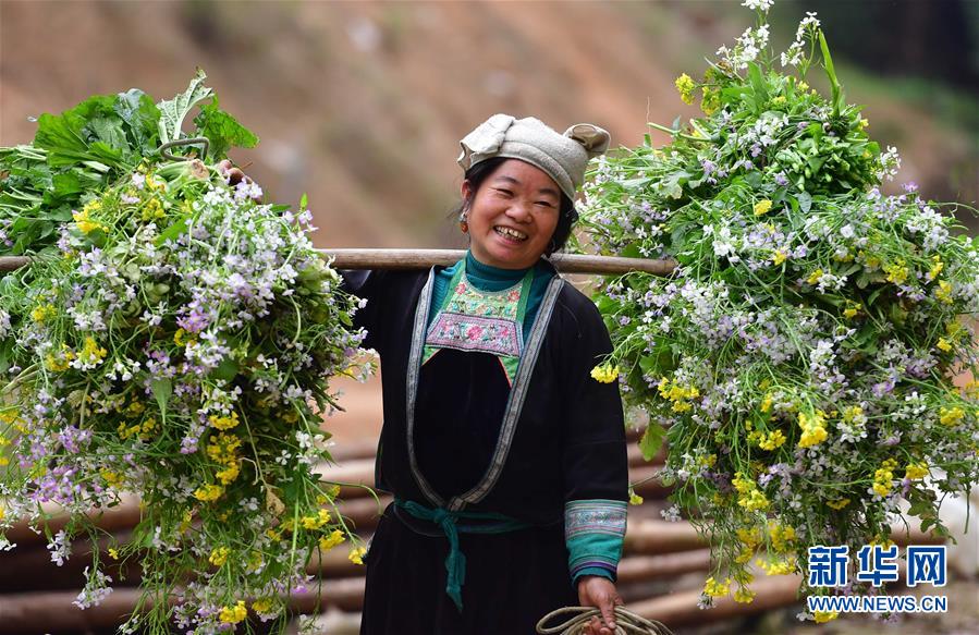 在黔桂烏英苗寨,村民勞作歸來(3月19日攝)。