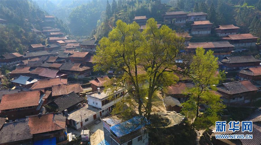 這是黔桂烏英苗寨春色(3月20日無人機拍攝)。