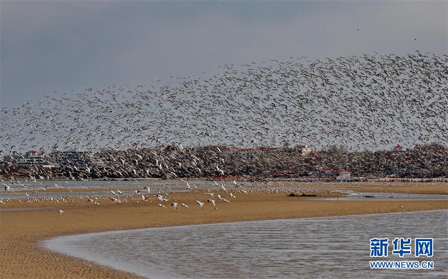 秦皇島現(xiàn)“萬鳥臨海”景象