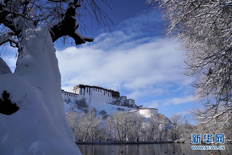 12月19日拍攝的雪后的布達拉宮。 12月18日,西藏拉薩市迎來今年入冬以來的首場降雪。19日清晨,拉薩雪后初霽,處處銀裝素裹,盡顯雪域高原之美。 新華社記者普布扎西攝
