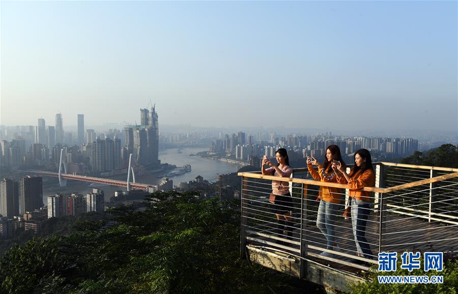 游客在位于重慶市南岸區(qū)的一棵樹觀景臺(tái)欣賞城市風(fēng)光(2018年10月10日攝)。 千里為重,廣大為慶。城在山水間、山水在城中,重慶頗具特色的立體城市景觀是城市靚麗的名片。 新華社記者 王全超 攝
